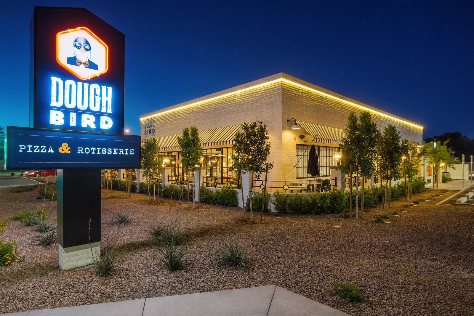 Logo and signage design created for Fox Restaurant Concepts pizza and rotisserie concept.