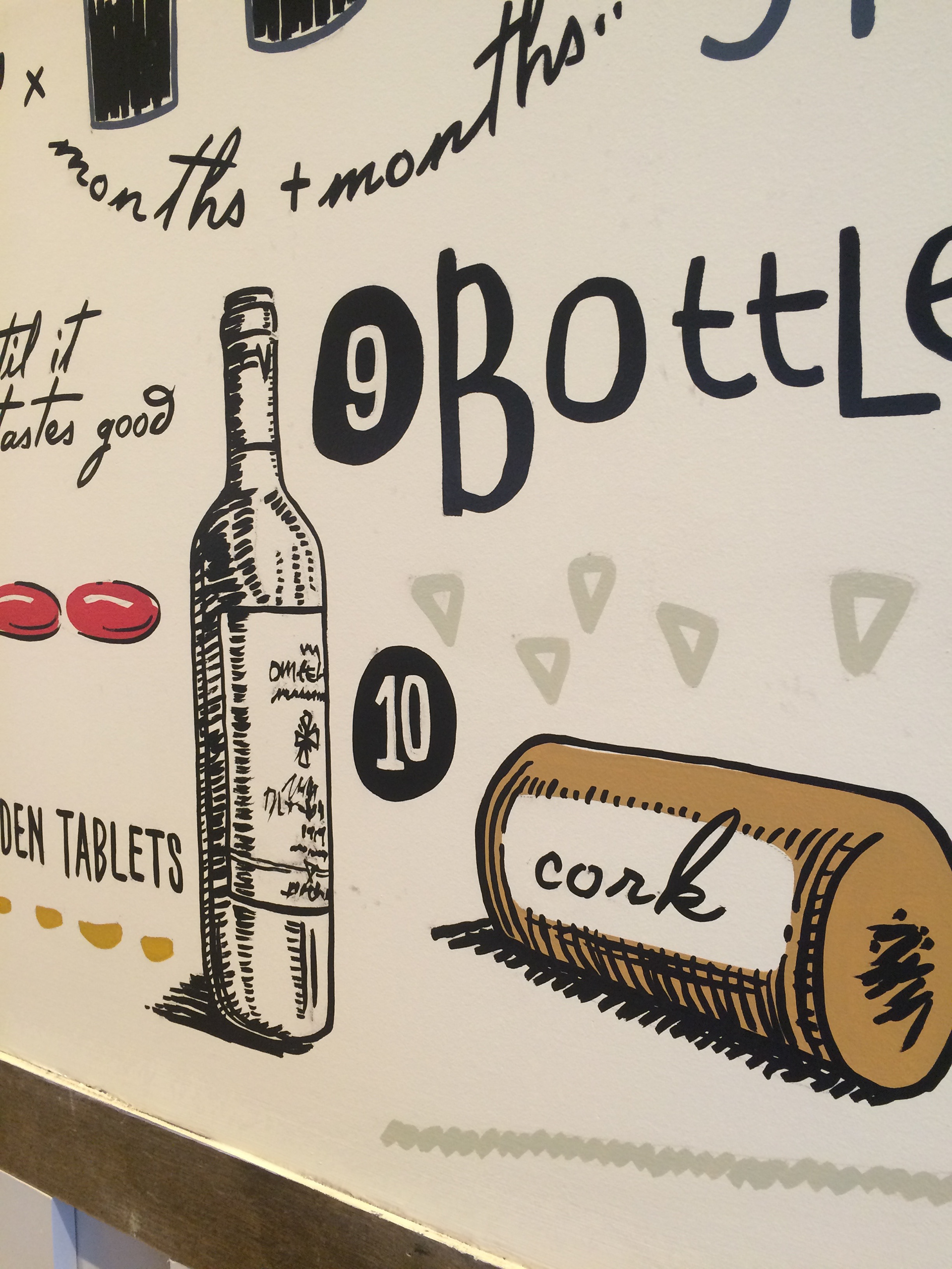 Custom art created for an expanding modern italian restaurant called North Italia. Graphics were illustrated, then painted on wood panels on location in Houston, Texas.