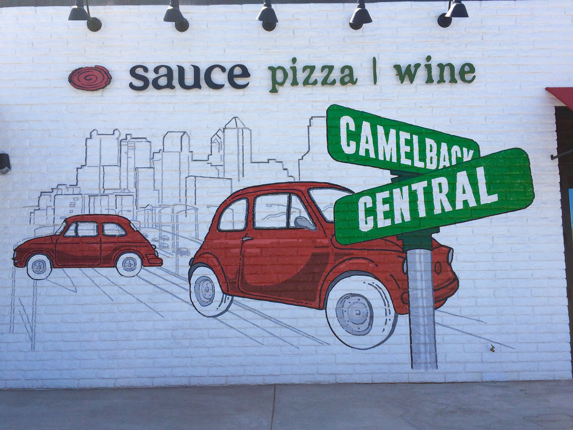 Mural designed for Sauce Pizza + Wine, a fast-casual restaurant located in uptown Phoenix, Arizona.
