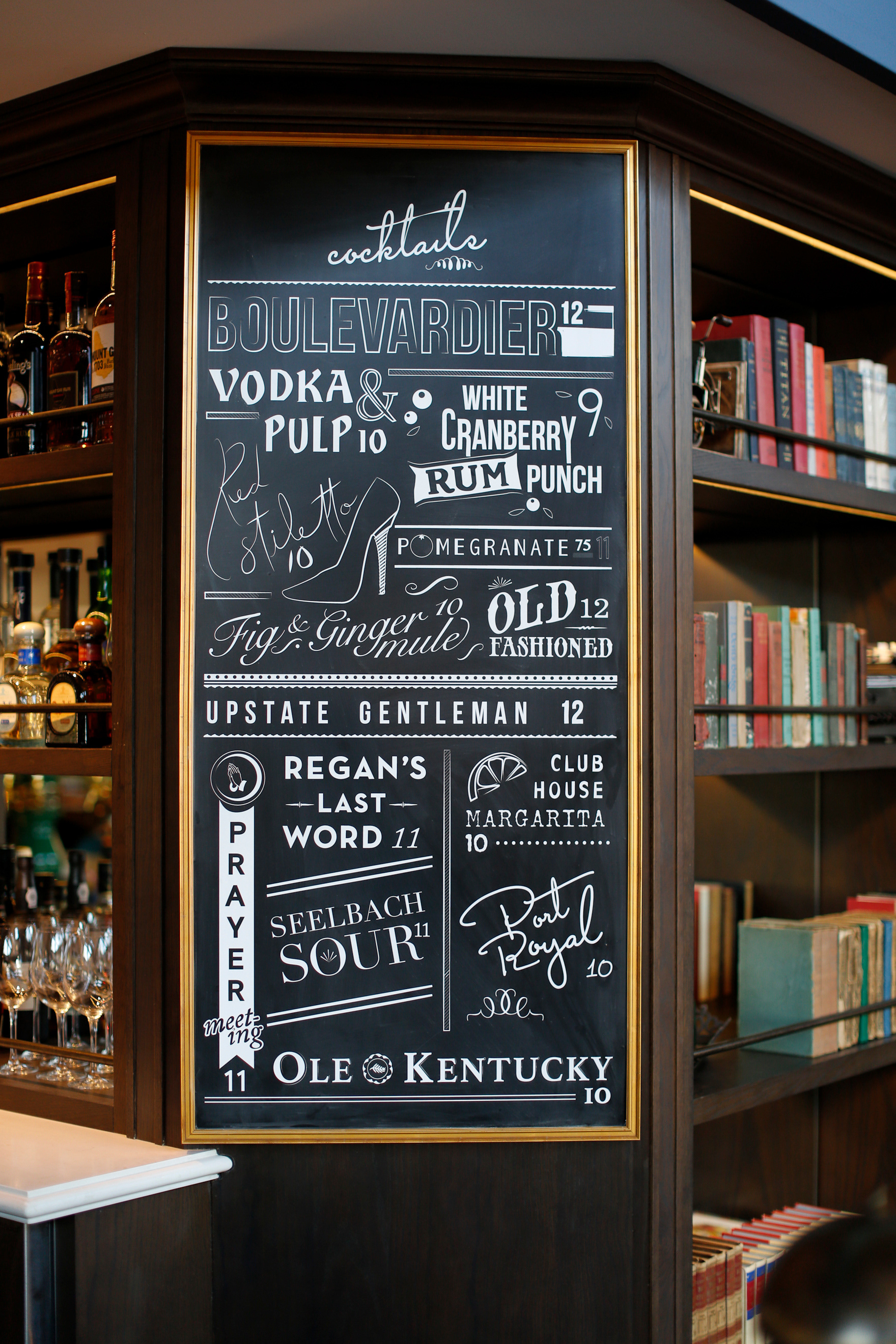 Chalkboard style menu design featuring signature cocktails at The Henry, a restaurant / coffee bar in Phoenix, Arizona.